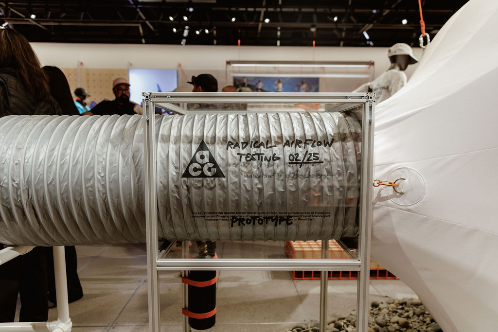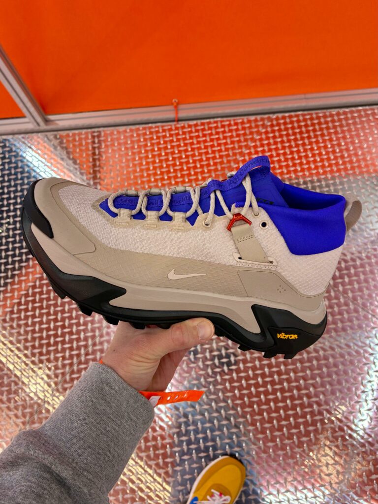 On enchaîne avec une découverte approfondie de l’univers ACG. Parce que les pratiquants outdoor ne vont pas forcément dans les shops Nike pour se fournir, le swoosh a l’intention de développer de vrais magasins exclusivement ACG, comme il existe des magasins Patagonia ou Arc’Teryx. C’est dans un véritable « prototype » de ces magasins que nous rencontrons les équipes design et produits ACG.