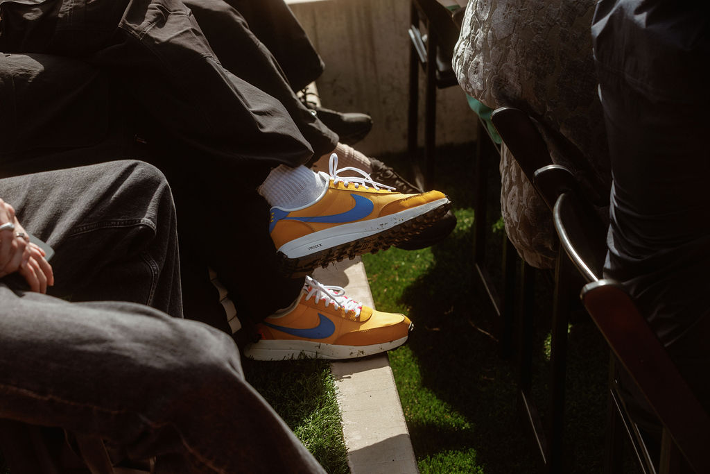 Il passe ensuite la parole à Aaron, casquette, tatouages, bagouzes, cheveux longs et lunettes de soleil, qui tient à bien rappeler que Nike n’est pas qu’une marque de basketball ou de football mais bien une marque de running et de trail running. Il nous raconte l’histoire de la LDV, portée par les Stonemasters, collectif de grimpeurs mythiques des années 70, en 1978 pour gravir le K2 sans oxygène, un moment clé à l’origine de l’idée de lancer ACG.