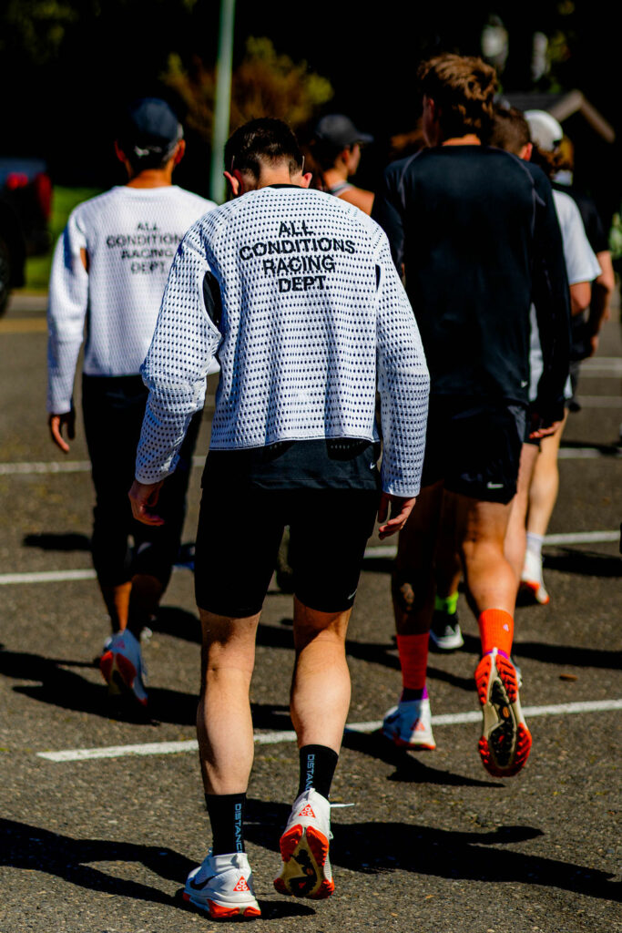On profite de l’après-midi pour aller courir sur les chemins autour de Cascade Locks, mettre la Zegama à l’épreuve et tester le AirFlow sous un soleil inhabituel ici, on a vraiment de la chance. Nike ACG a transformé un bar du centre du village en camp de base de la course où l’on peut retirer son dossard et s’immerger une fois de plus dans un univers All Conditions très abouti.