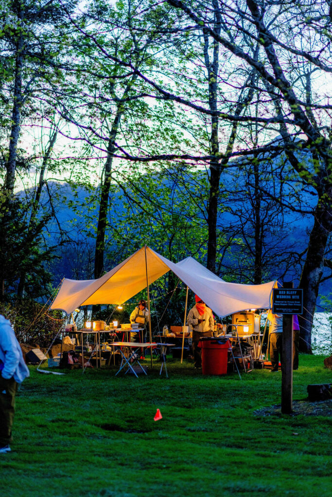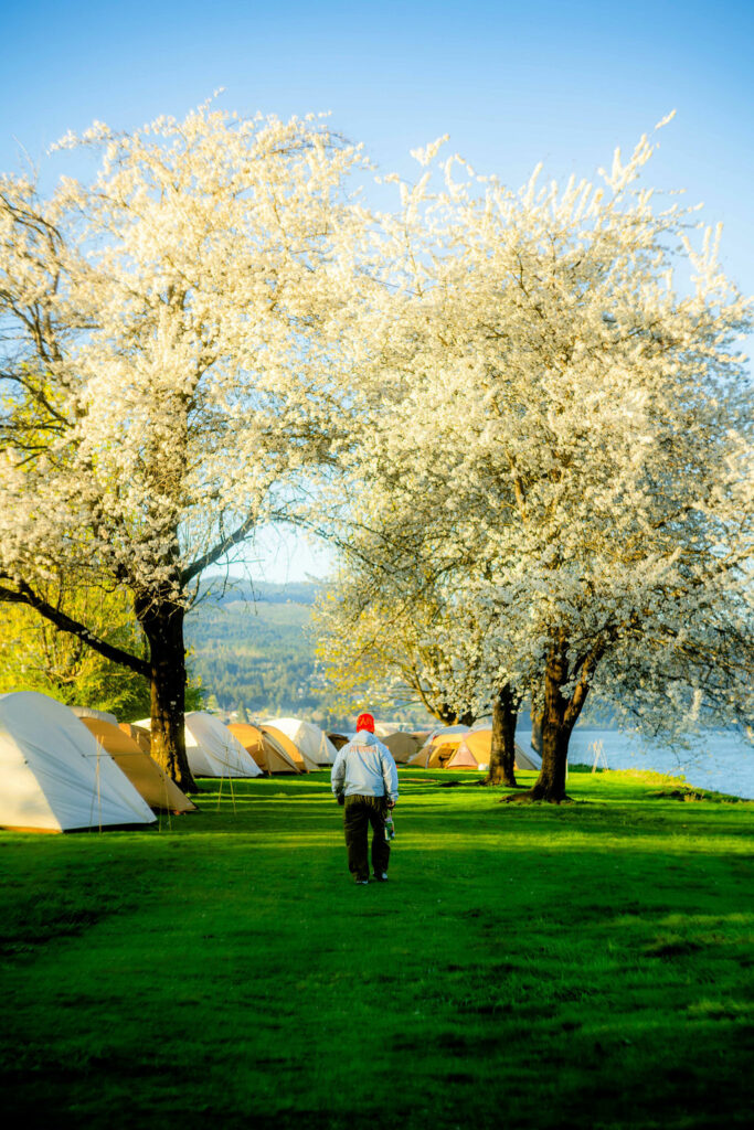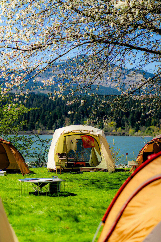 Ils nous ont préparé un campement impressionnant, full ACG et Snow Peak, juste à côté de la ligne d’arrivée de la course Gorge Waterfalls à Cascade Locks. La stratégie ACG est bien résumée, connexion avec les communautés de passionnés comme les Yoshis, support de courses authentiques et locales, en commençant à la maison, dans l’Oregon.