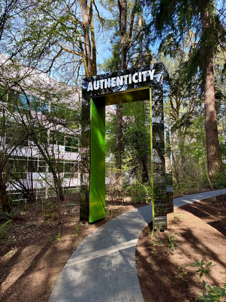 Et c’est exactement comme le Disneyland des sneakerheads que Ian (le prénom a été modifié pour cause de trou de mémoire), notre guide british du swoosh, nous décrit les lieux lorsque nous arrivons au Nike World Headquarters (WHQ), tout récemment renommé le Phil Knight Campus, du nom de l’illustre fondateur de la marque. Ian semble comme possédé lorsqu’il parle de la marque, vêtu de son teddy avec en chiffres romains « 25 » dans le dos, comme le nombre d’années qu’il a passé chez le swoosh. Un cadeau, un sésame, pour les employés qui réalisent cette performance de longévité chez Nike.