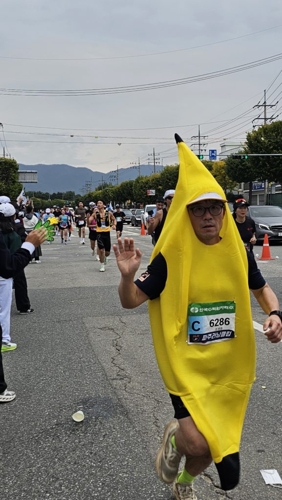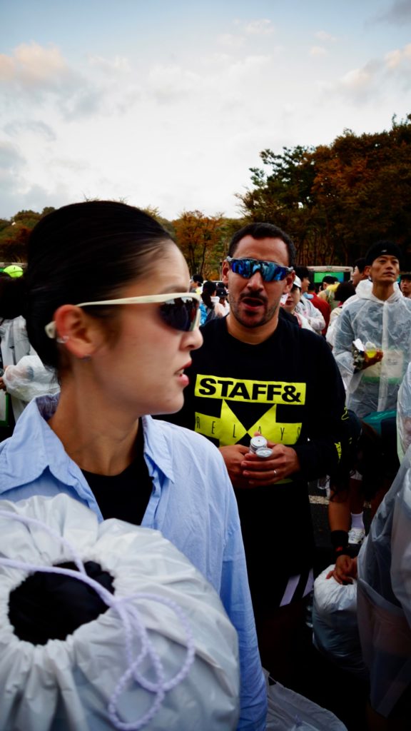 Idris : T’as bien un ou deux gars déguisés, mais globalement ce n’était pas le carnaval dans mon sas. Ce qui m’a le plus choqué, c’est le budget running chez les Coréens : c’était très rare de ne pas voir une paire en carbone aux pieds des coureurs. Même dans le sas 1h20 du 10k de Chuncheon, les gars étaient équipés comme des pros.