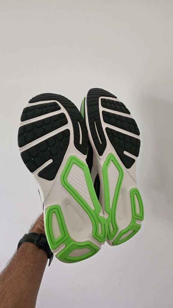 Gros ZoomX au talon, forme moins arrondi que la Vomero Plus, renforts bien apparent pour nous rappeler dans quoi on met le pied. On est sous le charme des coloris de communication « Tattoo / Hot Lava Barely » pour les femmes et « Iron Purple / Voltage Green ». Une esthétique un peu vintage, années 90 bien sentie pour une paire qui a globalement une bonne gueule pourvu que le coloris soit bien choisi. La Nike Structure Plus ne fera donc pas peur à ceux qui apportent une attention particulière à leur dégaine de coureur.